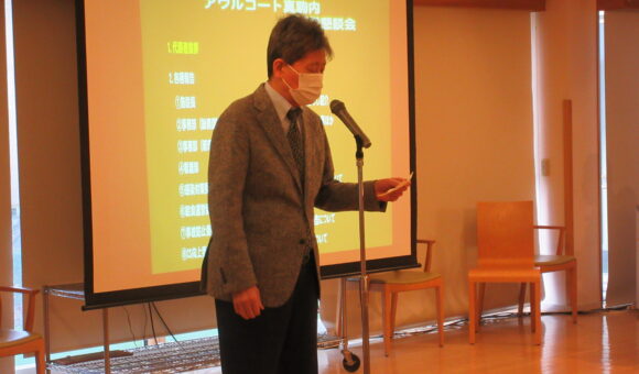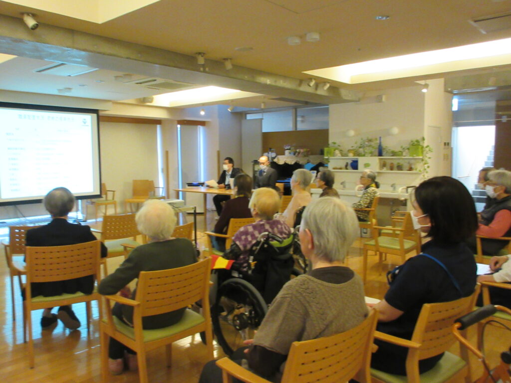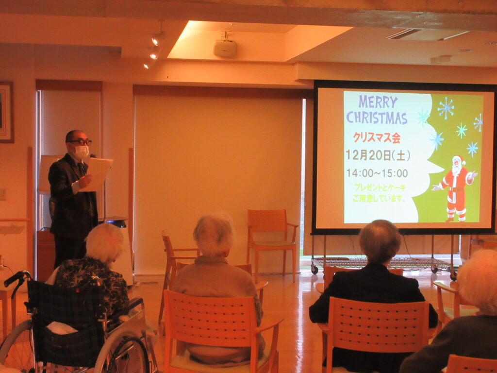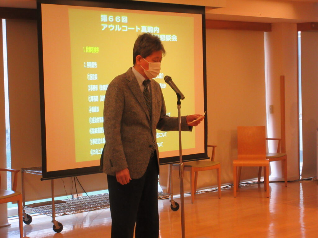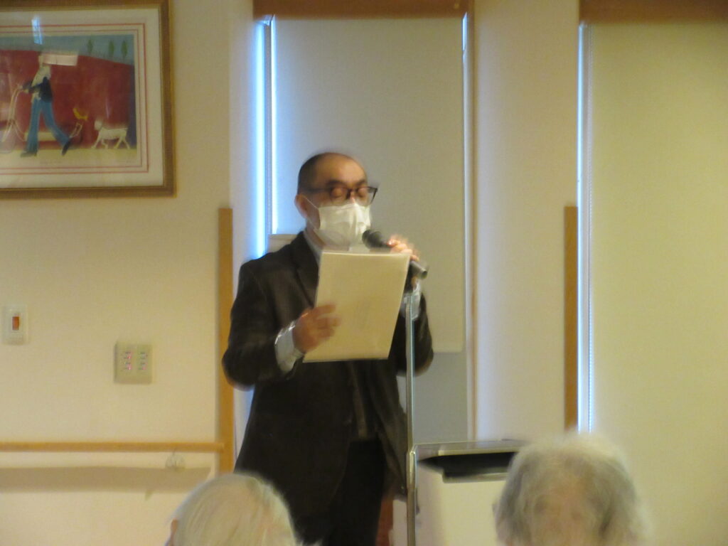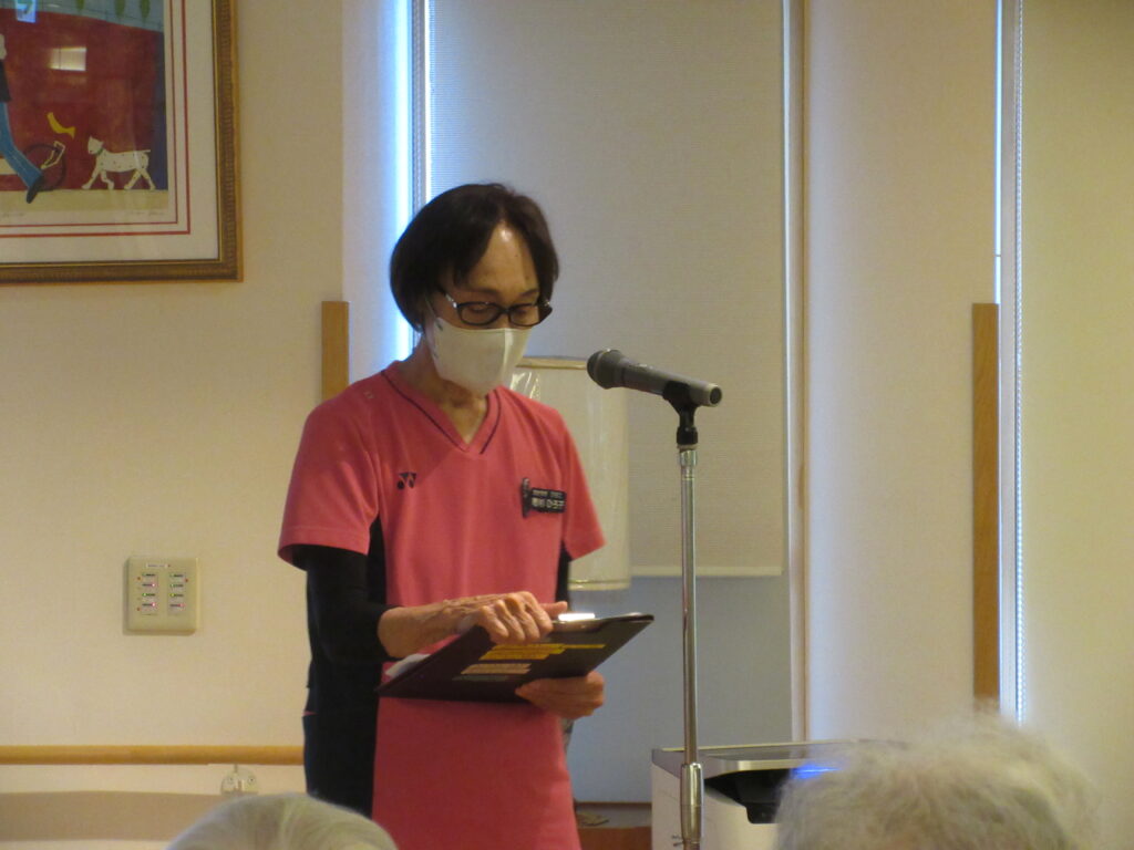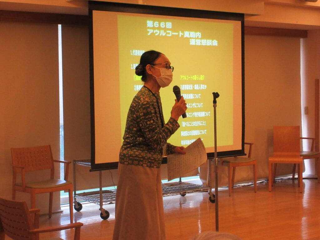 代表挨拶、施設長より「アウルコート秋の暮らし」をスライドで振り返りました。