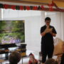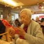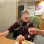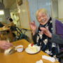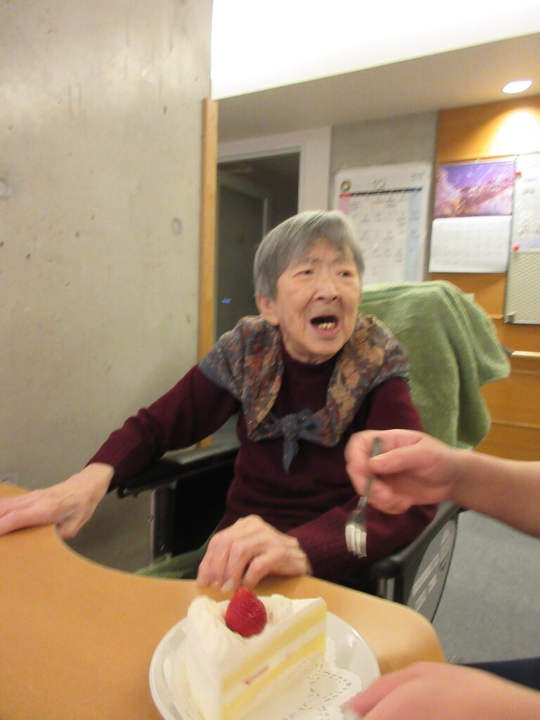 職員より「川の流れの様に」で歌のプレゼントを贈り、