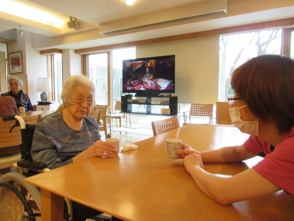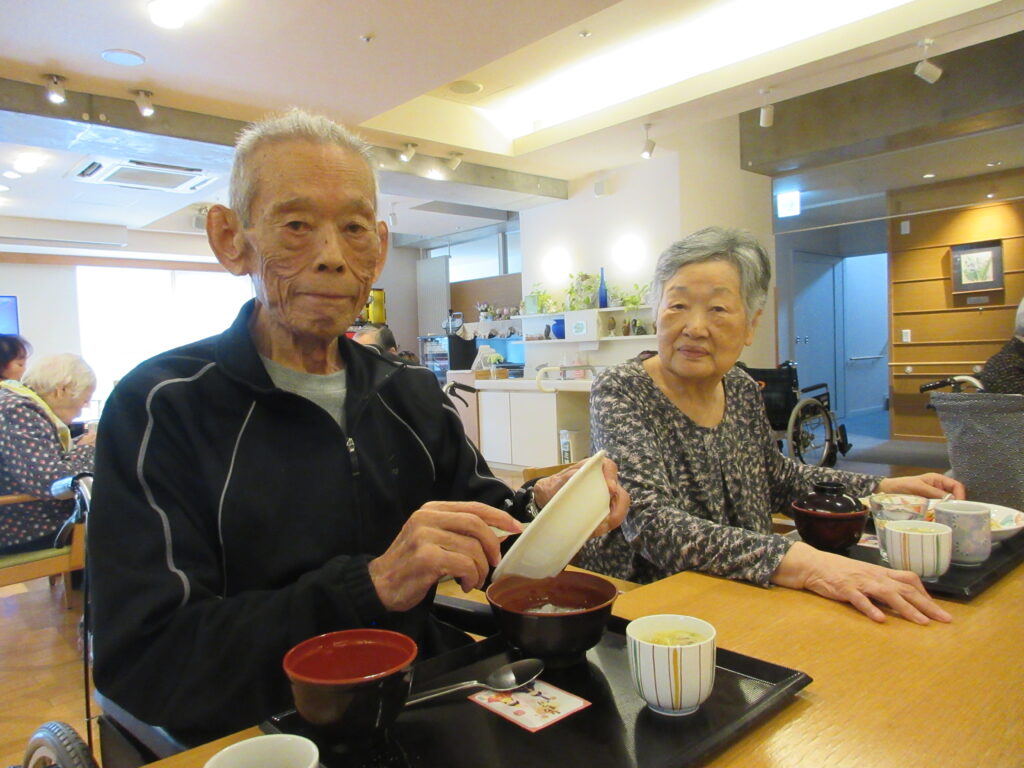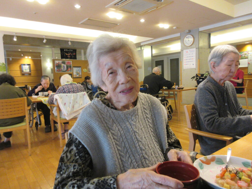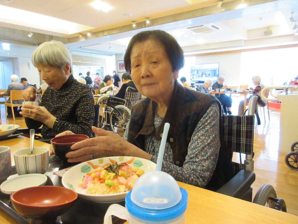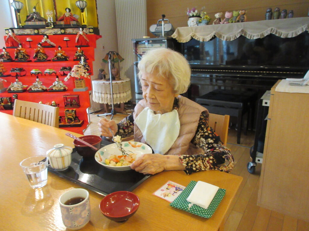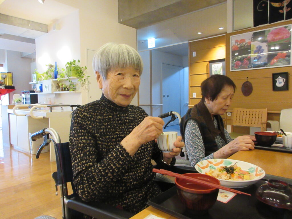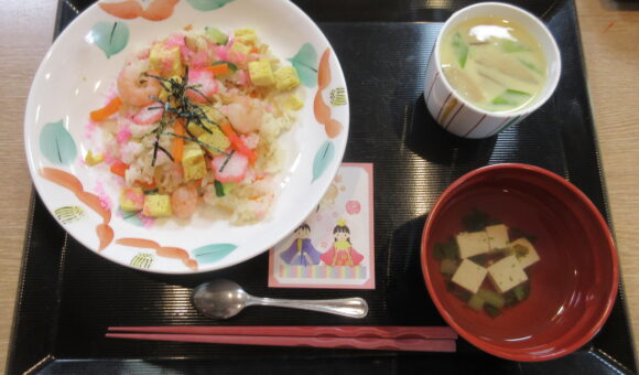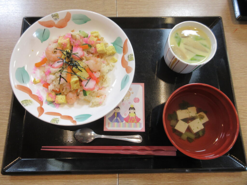 今年のひなまつりの日は、昼食でちらし寿司・茶碗蒸し・お吸い物